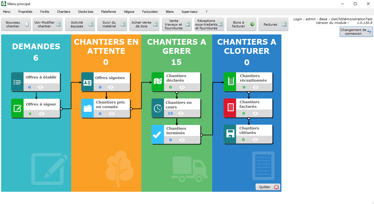 FORLOG, logiciel de gestion de chantiers forestiers. Simplifiez votre gestion, vivez la forêt ! Un logiciel pour les entreprises forestières qui vous permettra de facturer mieux et plus vite, d’être plus réactifs, de mieux connaître la rentabilité de vos chantiers, la géolocalisation de vos bois bord de route et sur pied. Avec FORLOG, vous êtes prêts pour le RDUE.